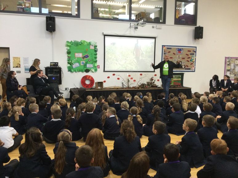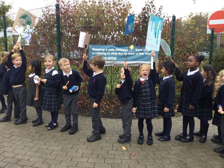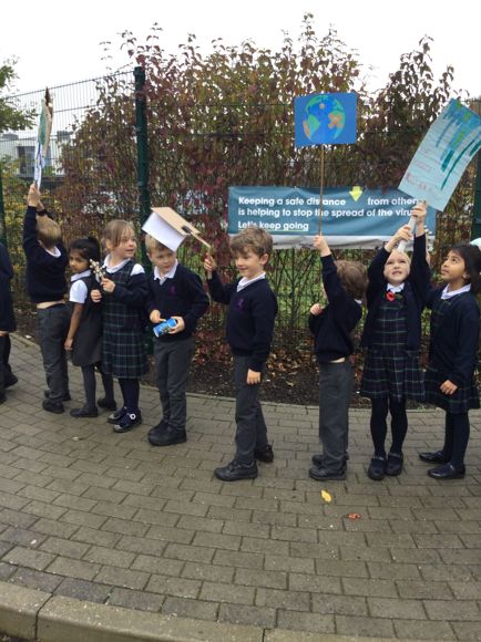 This morning, the whole school came together to pledge positive action and took part in a march, showcasing posters and poems created by the children.