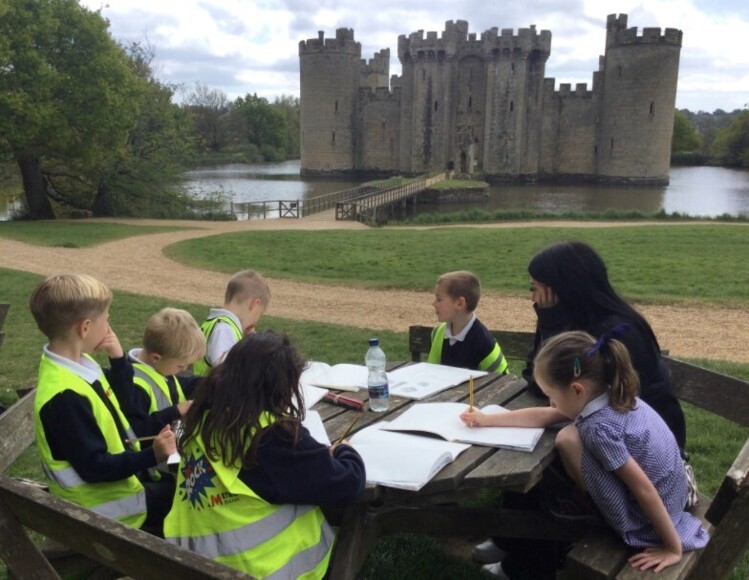 Shark class explored the giant ‘sand-castle’ that is Bodiam Castle on their recent school trip. They walked up the windy stairs to enjoy the views and dressed up as some characters that might live in a castle. They even sketched a picture of the castle from observation.