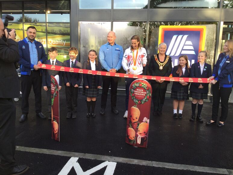 We were very excited to be invited to officially open the new ALDI Kings Hill store, alongside Paralympian Claire Cashmore yesterday. We joined in with the official countdown along with the long queue of awaiting visitors and we were very grateful for a few of our family members in the queue that donated their golden envelopes to the school. We will use the ALDI voucher for cooking ingredients and equipment needed later in the year. Thanks ALDI!!