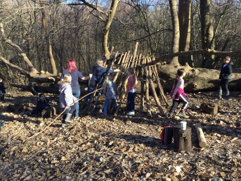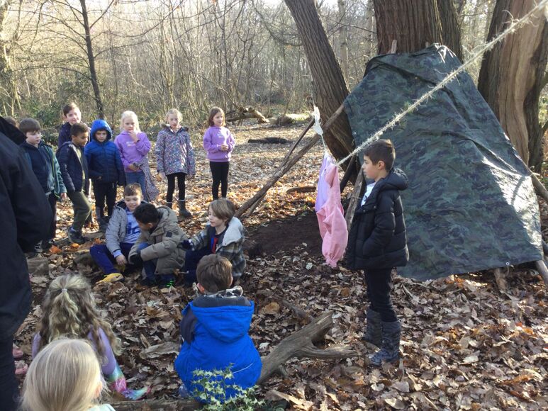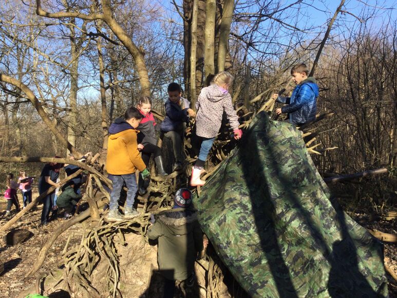 After lunch, we spent the afternoon creating dens in the forest school area and they were each tested to see how waterproof and comfortable they were (Mrs Nikshiqi’s group even had a washing line and soft furnishings!).