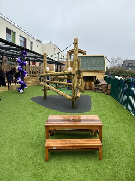 The new play area is situated outside the Key Stage 1 classrooms (Reception class, Year 1, Year 2 and the Specialist Resource Provision) at the school and includes climbing equipment, reading/book sheds and an amphitheatre style learning area.