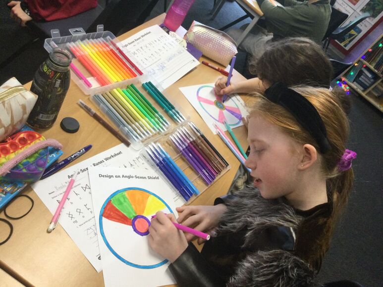 Year 5 had an Anglo-Saxon experience day on Monday. We started the day with a lego challenge to create Anglo-Saxon objects and settings, then we decoded sentences written in runes, designed our own shields and then after lunch, the highlight of the day: our very own Sutton Hoo ship burial complete with precious artefacts! We had a great day and the costumes looked amazing! Well done, Dolphins!
