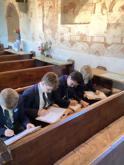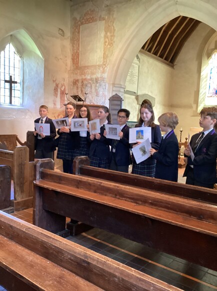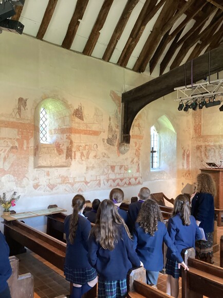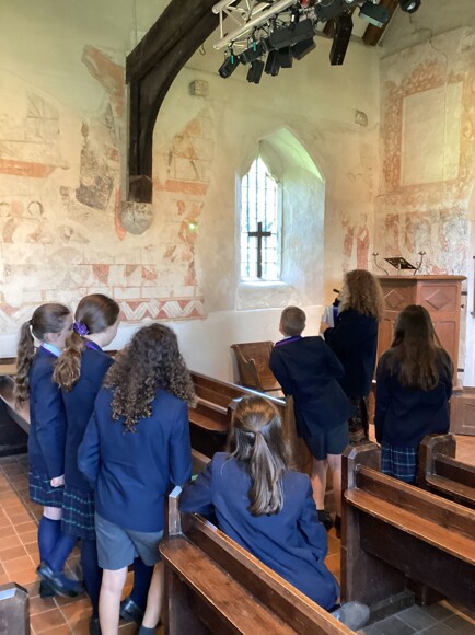 On Wednesday morning, a group of Year 6 children went over to St Thomas Becket Church in Capel. During this visit, the children took part in a fascinating workshop where they were able to explore the history of the church, its role within Christianity and the beautiful wall paintings that adorn the walls of the church.