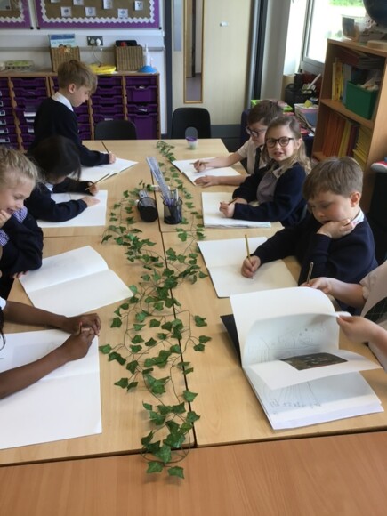 Year 2 were looking at the idea of contrasts in the artwork and produced some beautiful vine studies using contrasting colours and words.