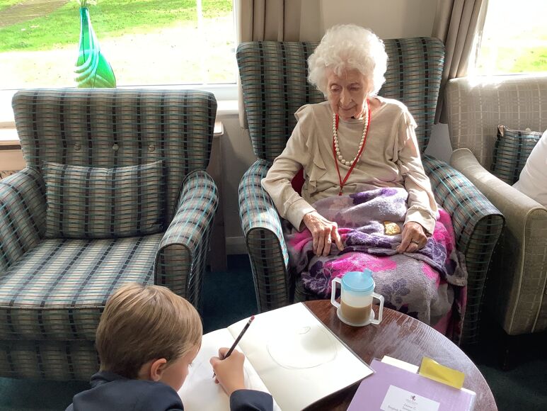 The children were made to feel welcome and quickly settled, explaining their learning and interests this term. They took their sketch books and had the opportunity to draw some of the residents, with one lady sketching a portrait of one of the pupils instead.