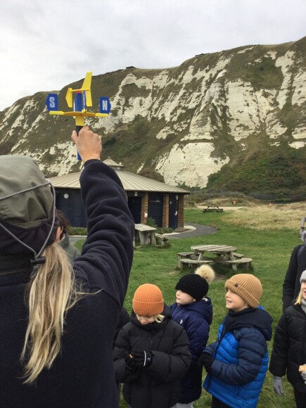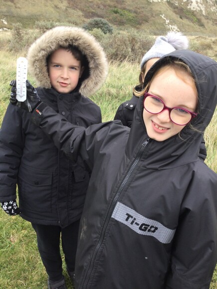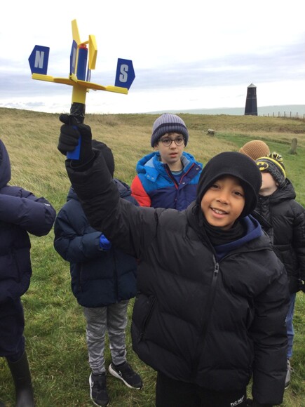 We enjoyed using various instruments to measure the weather, including a thermometer to measure the temperature (it was a chilly 6 degrees Celsius) and a compass to find the wind direction (south-westerly) as well as an anemometer to measure the strength.